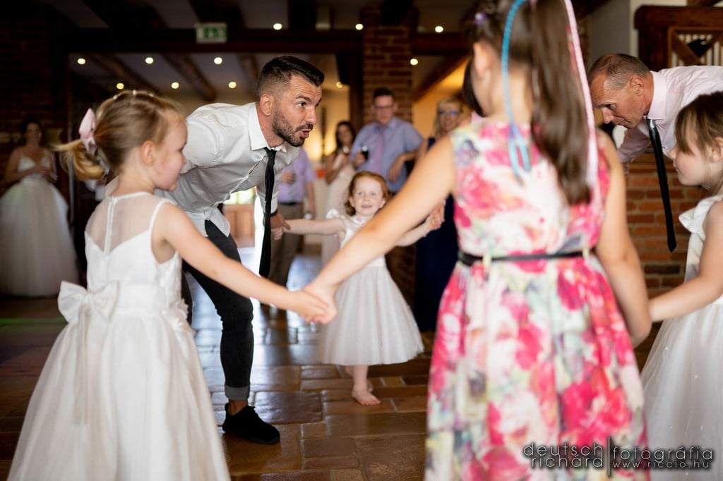 Újra az egyik kedvenc helyszínünkön fotózhattunk esküvőt, de előtte azért tartottunk egy klassz kreatív portréfotózást a Mecsekben. Dóri és Soma szerette volna a fotózást a Zsolnay Fényfesztivál helyszíneivel zárni és még ez is összejött, pedig egy ilyen helyszín azért tartogat meglepetéseket a jegyespárok és a gyanútlan fotósok számára. Szerencsére az Igenfilm.hu csapata résen volt és a fotózást is segítették, ahogy csak tudták, amiért ezúton is hálánkat szeretnénk kifejezni! A szertartást Villányi Máté aka. a Cerminátor tartotta, külön tetszett, hogy a pár kislányait is bevonták, így a lányok tanúkként kaptak szerepet a szertartáson. A szertartásokat fergeteges buli követte, még ilyet! 🙂