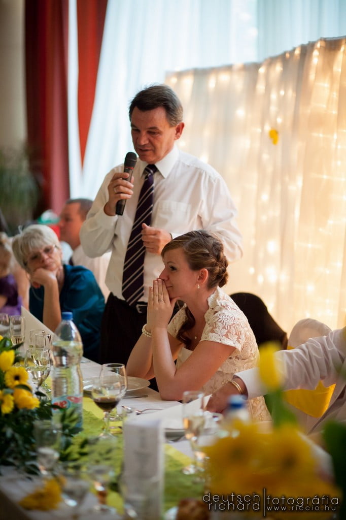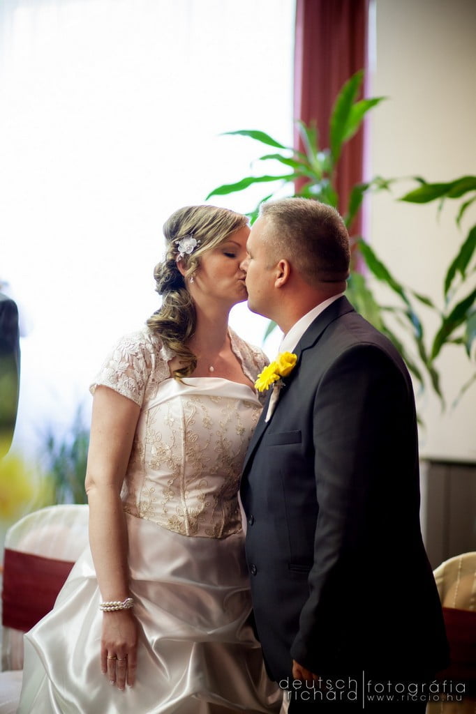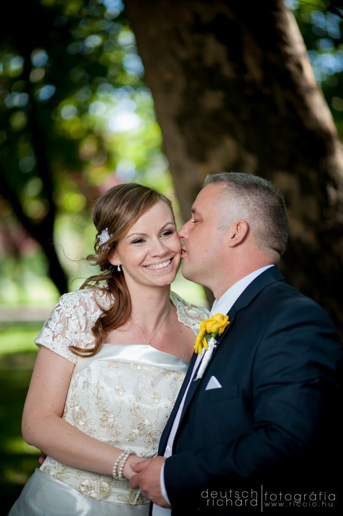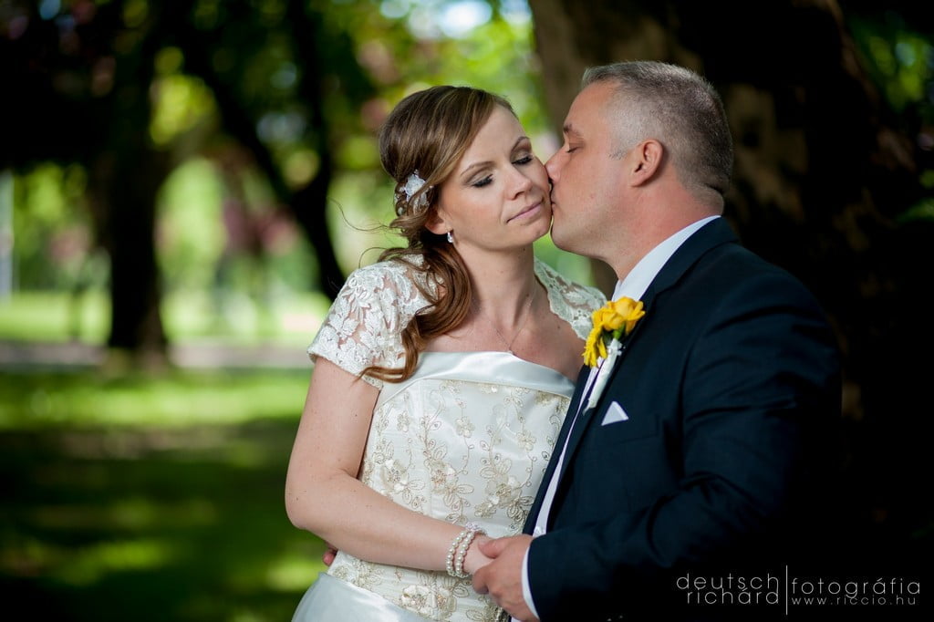 Bár ajegyes fotózáson nem volt a legszebb az idő, azon a bizonyos szombat reggelen már a Nap első sugaraiból látszott, hogy gyönyörű időnk lesz. Talán így próbált minket valamelyest kártalanítani a természet a jegyes fotózáson elszenvedett sérelmeinkért, talán csak a kora májusi időjárás miatt volt így, de mi nagyon örültünk neki. Korábbi kalandjainkat ismerve egyáltalán nem féltem ettől az esküvőtől, hiszen már a bokodi tó partján is összeszokott csapatot alkottunk. A lufiposta kicsik és nagyok körében egyaránt hatalmas sikert aratott, az örömapa beszédétől pedig szem nem maradt szárazon. Ritkán látni ennyire klassz nyitótáncot, pláne ennyi rokon és barát bevonásával. Egyszóval klassz volt minden!